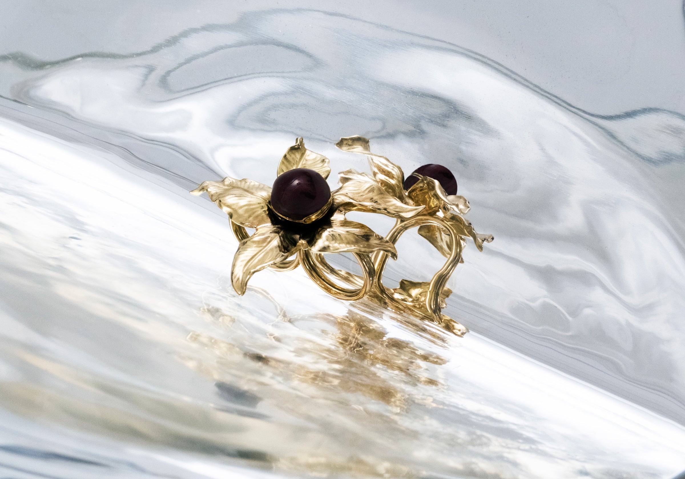 THE CAPSULE’S SEVEN PIECES WERE DESIGNED BY ALICJA KWADE AND GALVAN CREATIVE DIRECTOR ANNA-CHRISTIN HAAS, BASED ON KWADE’S 2012 EDITION “ENTROPY” – A REAL ATROPA BELLADONNA BERRY ELECTROPLATED IN GOLD – REFLECTING HER LIFELONG FASCINATION WITH THE PROCESS OF GALVANISATION AS A KIND OF ALCHEMICAL TRANSFORMATION OF MATERIALS, MEANING THE PRESERVATION OF OBJECTS AS A FROZEN MOMENT IN TIME.