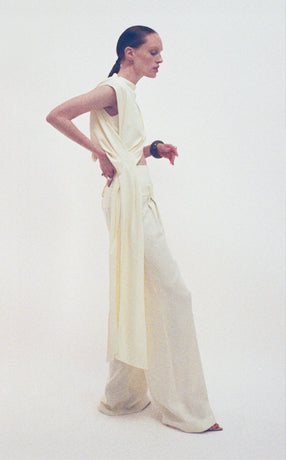 Model is 180cm and is wearing a size S - Longline, high-neck silhouette - Sheer jersey fabrication for a sophisticated look - Tubular detailing at the front, back, and side seams